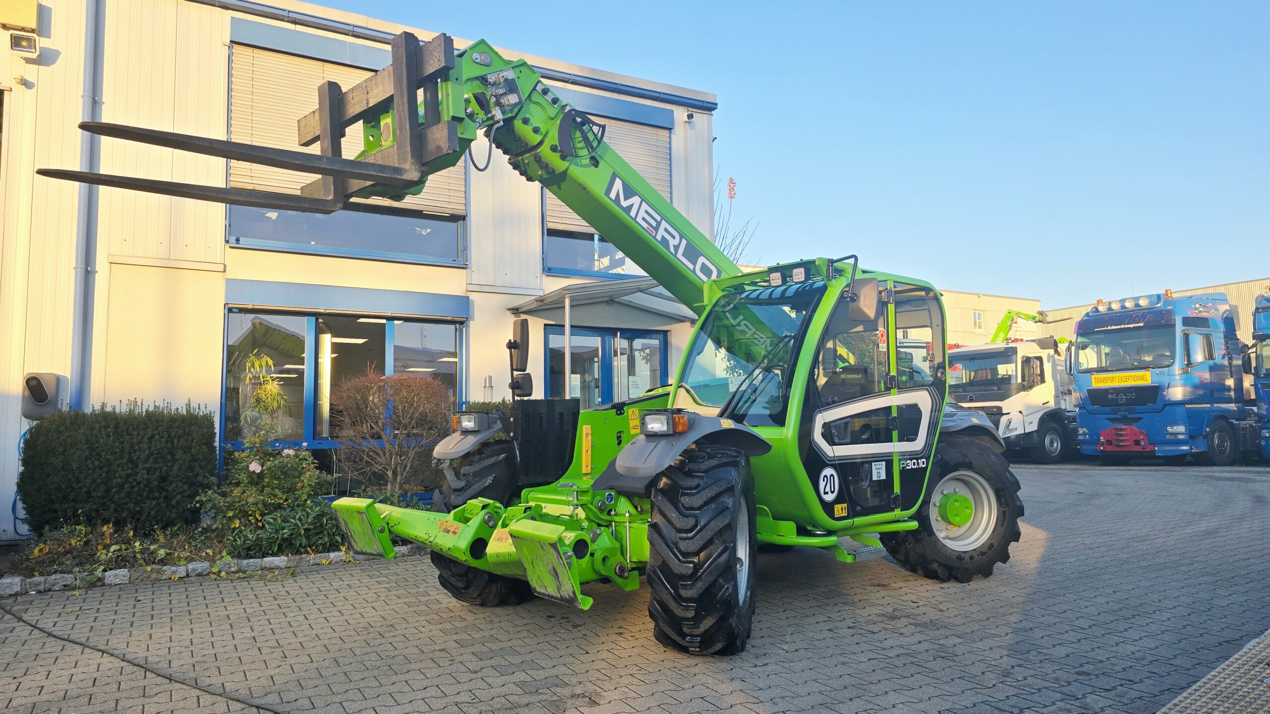 Teleskopstapler Merlo Panoramic 30.10 Technische Daten Leergewicht 7,6 t Tragfähigkeit 3,0 t Max. Hubhöhe 9,8 m Max. Auslastung 6,7 m PDF Download Zum Kontaktformular